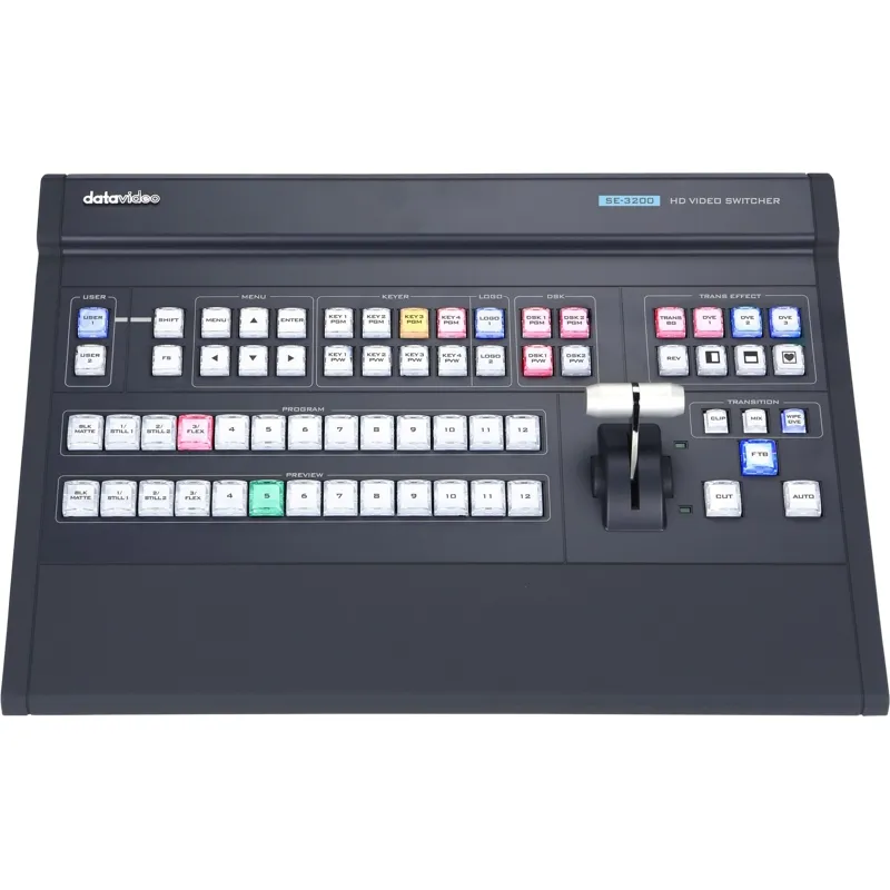 The SE-3200 is Datavideo's top of the line switcher with full 1080p support on every input and output, and not only has this, but 3200 series also has a built-in input scaler, for up and down conversion on each available input.