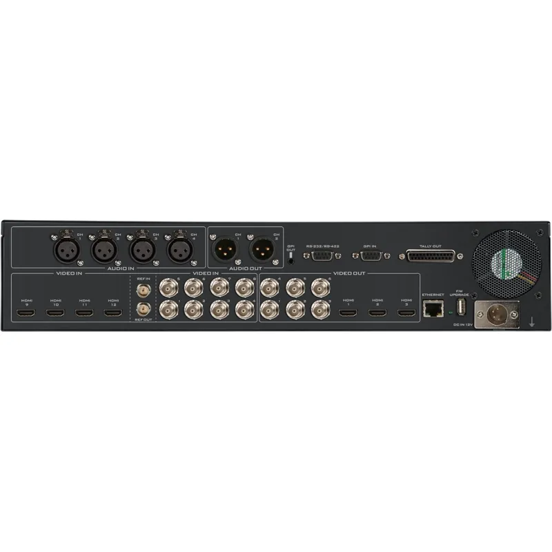 The SE-3200 is equipped with 12 inputs (8x SDI+4x HDMI) and 9 outputs (6x SDI+3x HDMI) to help you produce a sophisticated and professional live event.
