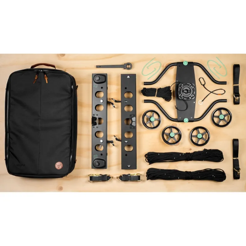 Designed to be portable; pack away into a backpack with pockets for each piece