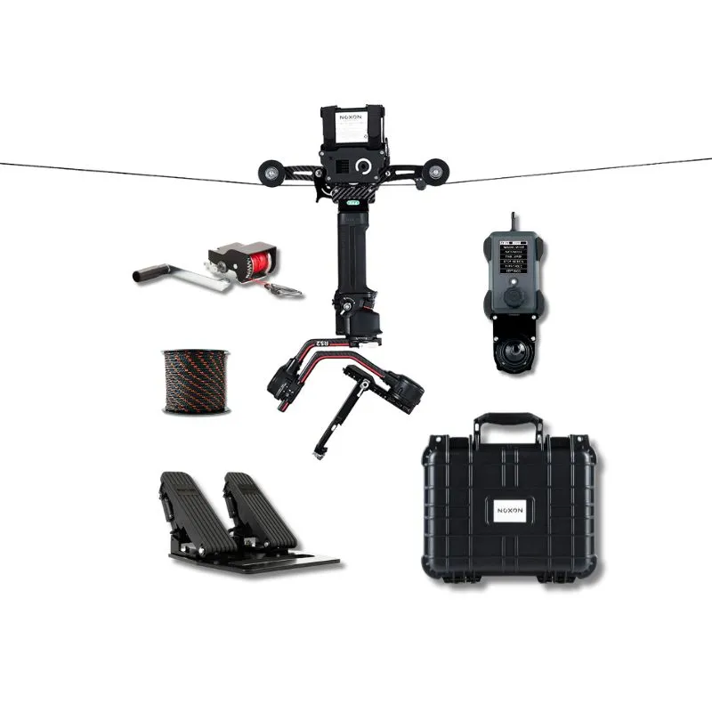 The Noxon Portable Wirecam Ultimate Kit is a professional cablecam system ideal for video streaming at concerts and events. Its durable stainless steel and aluminum construction supports up to 6kg of equipment, with speeds ranging from 5mm/s to 2200mm/s. This kit includes: