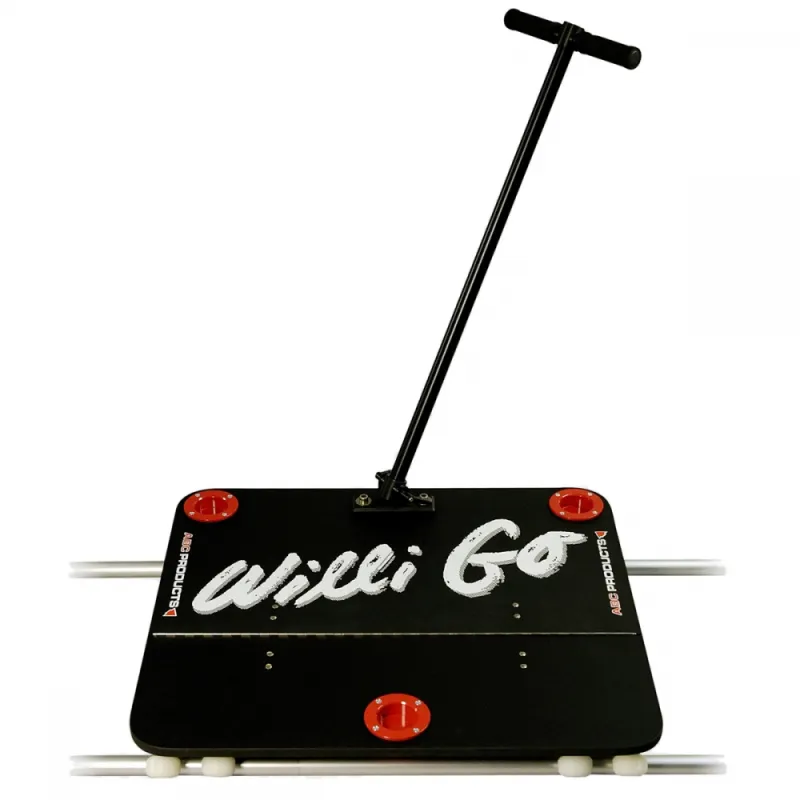 Willi Go is a compact and light dolly system conceived for quick and easy use: you can mount the light dolly on your own and lay out 6.4 meters (21 ft) of quick tracks in around two minutes. Whether you want to make a smooth moving shot with the camera on your tripod or on a light crane, Willi Go will allow you to work on locations wherever you are and with the least effort.