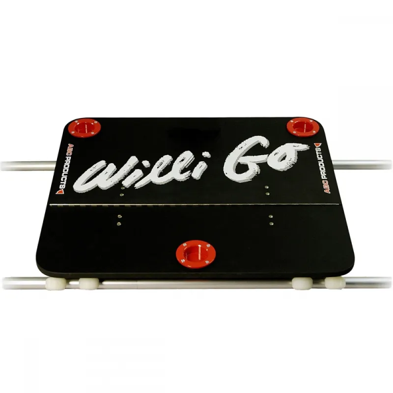 The ABC tracks have a diameter of 30 mm (1.18 in) and come folded in a length of 83 cm (32.68 in). The tracks are quickly unfolded to a length of 6.4 meters (21 ft) (standard included in the package) as they are connected together with an elastic cord. This also makes it impossible to lose any parts. Once you have laid the tracks, Willi Go will automatically centre the required distance.