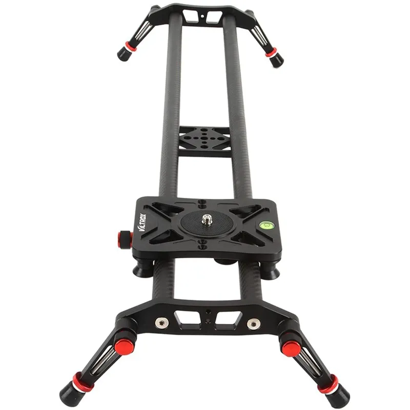 The VC80 Carbon Fiber Track Slider from Viltrox enables multiple camera mounting options and provides smooth and stable movements of your device. The shake-free and lightweight slider can hold up to 22 lb and features a 3/8"-16 screw on the sliding plate to mount your camera or ball head. It is equipped with four adjustable legs for placing the slider on the ground or on a table. The slider features 1/4"-20 and 3/8"-16 screw holes on the bottom and 1/4"-20 screw holes on both ends for horizontal and vertical mounting options. For added convenience, a carry bag is included.You can adjust the slider's height by shifting the legsHorizontal shooting gradienter for enhanced calibrationSuitable for DSLR cameras, camcorders, and DV