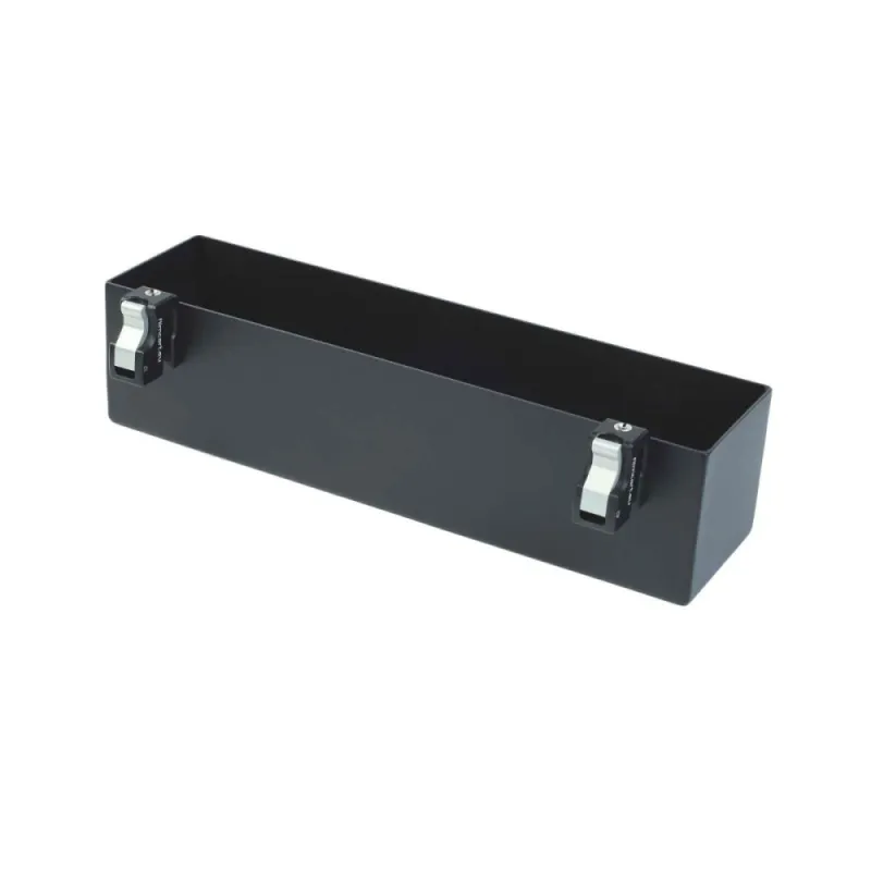 Box short with 2x quick clamp allows you to secure delicate parts against scratches during transport. Provides an additional surface. Quick clamp system allows you to fasten accessories easily. Fits to Smartone model cart and to new Smartone XL, and probably fits to any carts that have 4-2mm aluminum thick sides.