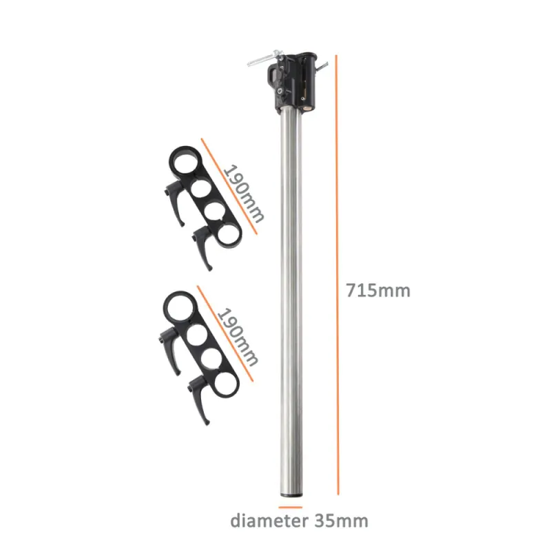 This solution allows you to mount heavy equipment on the trolley display monitors, steadicam, mounting heads 100mm-150mm. For mounting, you can also install any tripod whose section allows you to clamp onto a 35mm tube.