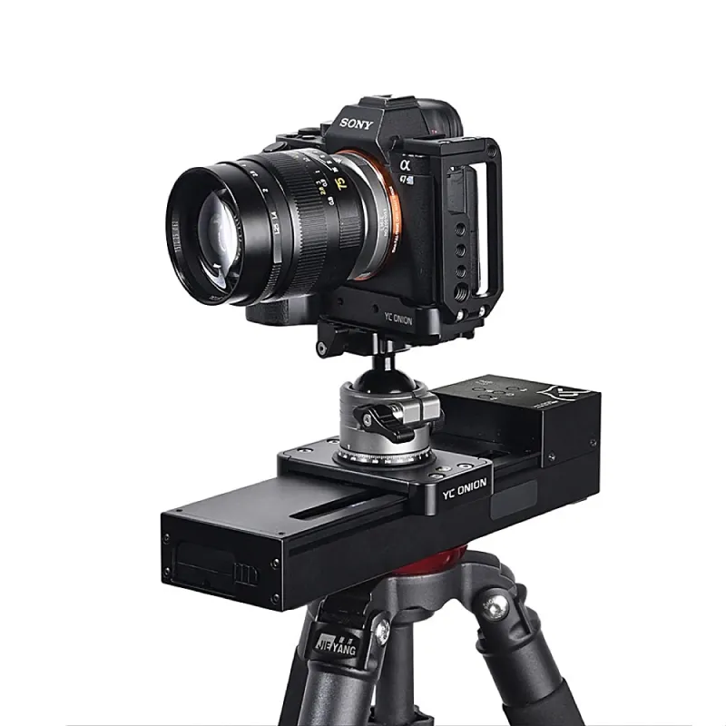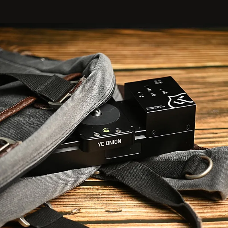 The YC Onion CHOCOLATE SE Motorised Slider is a travel-sized slider designed for compact cameras. It has a load capacity of 20 kg and can support cameras up to 2.5 kg in vertical shooting. With an iOS or Android smartphone app via Bluetooth, you can control the slider, but you can also do so manually.