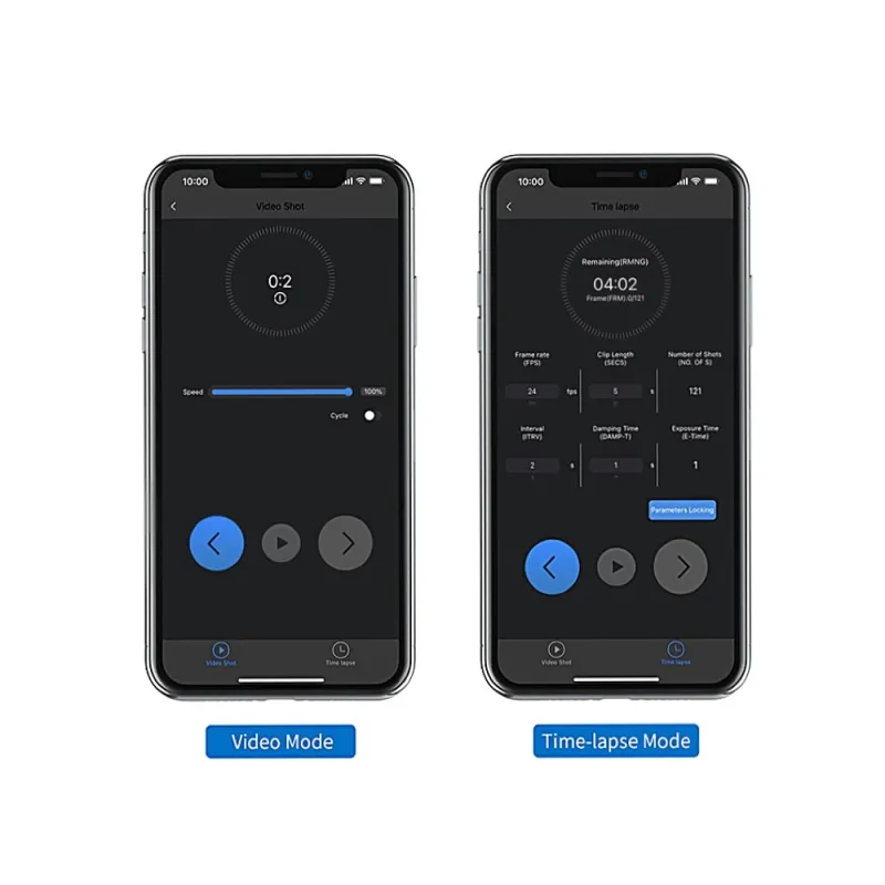 With an app compatible with iOS and Android, you can communicate with the motor via Bluetooth, which effectively prevents shake due to handheld use. You can also switch between modes such as time lapse mode and video mode.