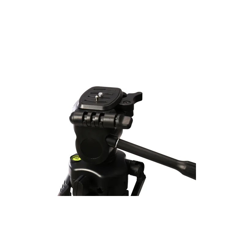 The WT-3530 is an aluminum tripod with head from Nest. Because the tripod is made of aluminum it weighs less than a kilo and a half. The tripod has two spirit levels, one on the tripod itself and one on the head. In addition, the tripod also has a handle for carrying / moving the tripod and a lever for moving the head. The head can be moved front to back, left and right (360°), finally you can also tilt it 90°. In short, whether you always want to take pictures from the same position or when you want to make videos with smooth movements, the WT-3530 is a tripod for everyone.