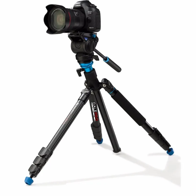 5.5 lb Capacity Flat Base Tripod Head Aluminum 4-Section Tripod Legs Fully Convertible to a Monopod 21.3 to 65" Height Range Independent Pan and Tilt Locks Rubber and Spiked Feet Left/Right Pan Bar Rosette Mounts