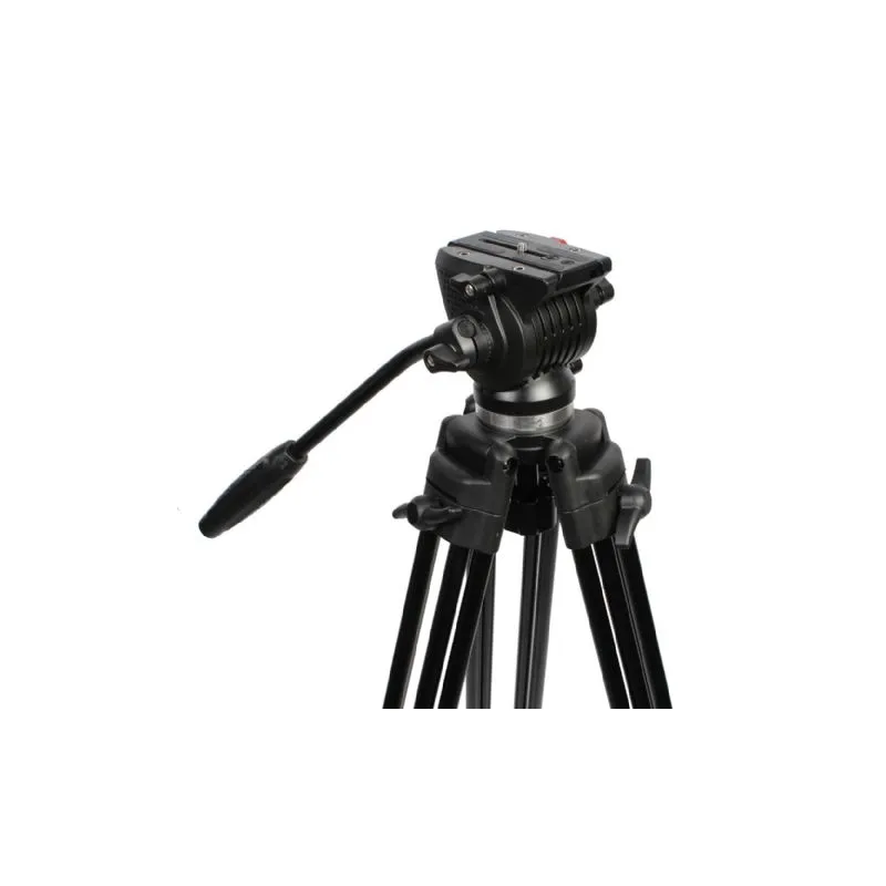 The Nest NT-777 is a video tripod with fluid damped pan head. It is a pretty portable solution for durable support and smooth operation while shooting with camcorders or DSLR cameras. The head of the NT-777 moves very smoothly due to the fluid damping. The head has a built-in bubble level, a quick release plate and a safety locking pin, which prevents mounted equipment from unintentional unlocking.