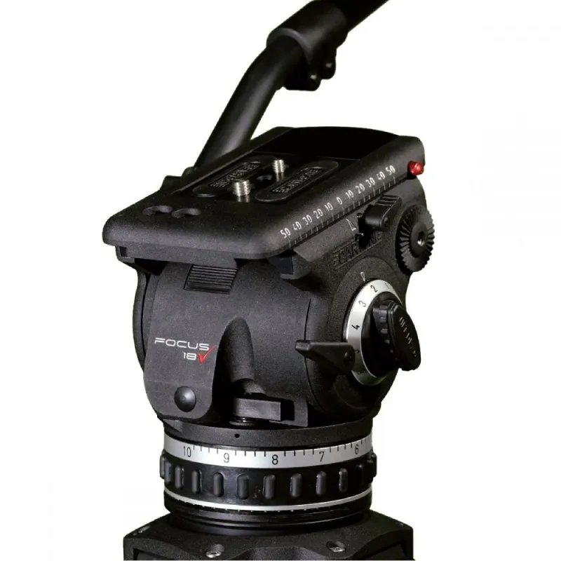 Built of magnesium alloy and aluminum the Focus 18 Fluid Head is specifically designed for ENG digital camcorders weighing from 6 to 18 kg (13,2 to 40 lbs). CARTONI has employed the latest in design technology to offer a Fluid Head which is extremely rugged, lightweight and cost-effective. Focus 18 offers a host of advanced features including infinitely adjustable tension settings, Euro-style quick release camera plate and switchable illuminated bubble level. The award-winning, patented Fluid dampening system ensures consistent drag levels and smooth camera movements throughout the range. Featuring an infinitely variable counterbalance with easily-readable numerical reference, the 18 provides excellent performances at any tilt angle from +90 to -70 degrees (-90 with sliding base plate).
