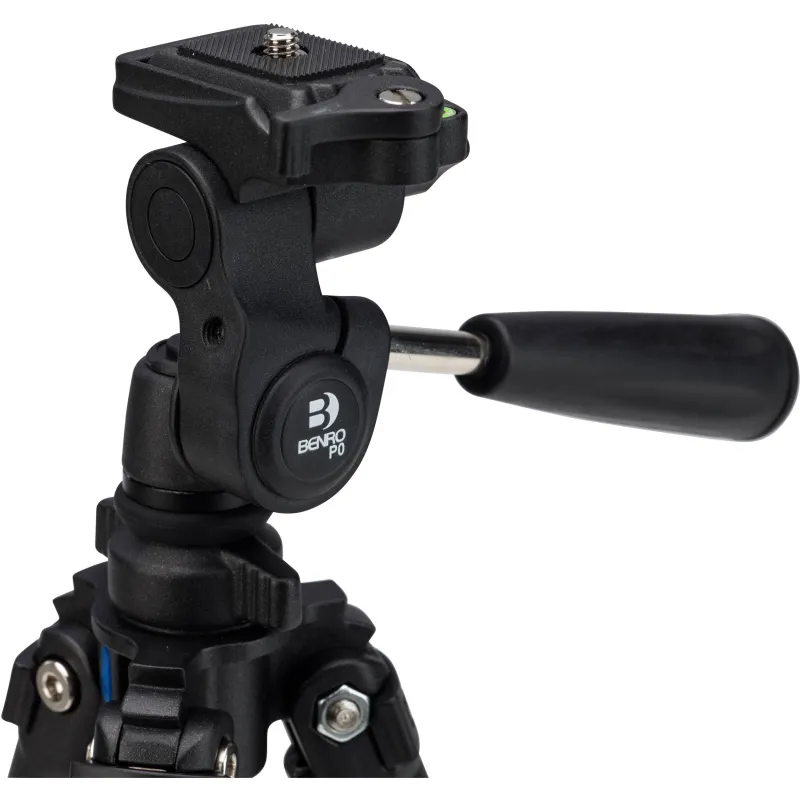 Included with the tripod is a non-detachable P0 3-way pan/tilt head with a bubble level and a quick release plate. A quick release plate is included for fast camera attachment. A carrying case is also provided to help protect the tripod and head.