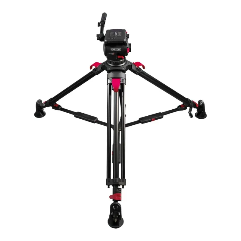 This set includes Focus 12 Fluid Head assembled with Red Lock Aluminum Tripod, Mid level Smart Lock spreader, rubber feet and soft bag.