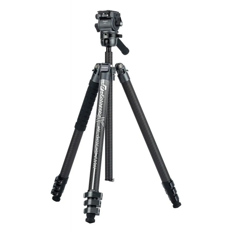The Fotopro X-Airfly Max Video is a versatile tripod with a combination of ball and oil heads, perfect for photography and filming. Made of ultra-lightweight 3K carbon fiber, it weighs only 1.65 kg, making it ideal for travel. The tripod can be converted into a monopod for added mobility. It features Flip Lock clamps, rubber leg caps, and hidden spikes for stability on various terrains.