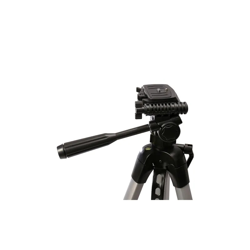 The WT-3560 is an aluminum tripod with head from Nest. Because the tripod is made of aluminum it weighs less than a kilo and a half. The tripod has two spirit levels, one on the tripod itself and one on the head. In addition, the tripod also has a handle for carrying / moving the tripod and a lever for moving the head. The head can be moved front to back, left and right (360°), finally you can also tilt it 90°. In short, whether you always want to take pictures from the same position or when you want to make videos with smooth movements, the WT-3560 is a tripod for everyone.