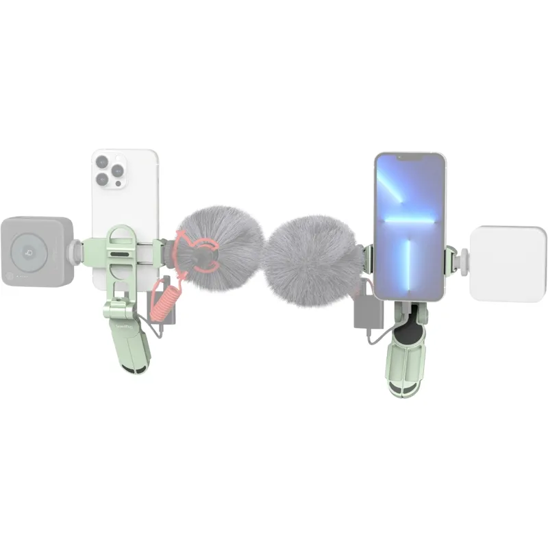 SmallRig Universal Smartphone Holder 3745 is designed for smartphone users to achieve photography, live-streaming, vlogging, interviews, etc. with their smartphones. It’s compatible with most smartphones in the market with width ranging from 5.5cm to 8.8cm. It adopts springs inside for quick mount/dismount of the smartphone. It comes with 2 cold shoes allowing mount of different accessories. Its Arca-Swiss compatible baseplate can be attached to a Arca style tripod, also can be used as a handgrip for handheld shooting. The holder can be used as a smartphone stand by opening the baseplate to both sides. It supports 360 degree pan adjustment, 270 degree tilt adjustment, and can be folded to store in your pocket. Inbuilt rubber pads help protect your phone from scratches.