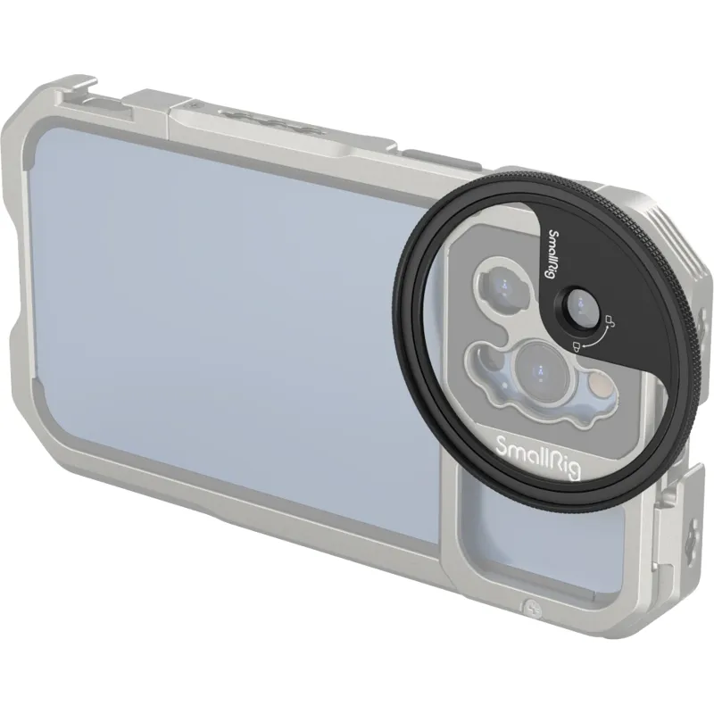 Note: The adapter ring shall be mounted onto the upper left lens mount of the iPhone 13 series、iPhone 12 Pro series; shall be mounted onto the bottom right lens mount of the iPhone 13; rotating counterclockwise to lock; Be care of its orientation; Not compatible with iPhone 12.