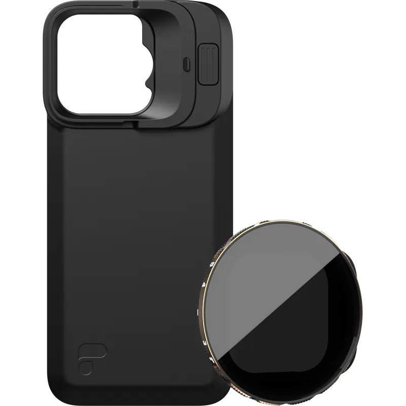The edges of the Exo sit just inside the iPhone 16, giving you that cold, naked feel of the iPhone in your hand. It features the QuickSlide filter and lens mount, allowing you to embrace the minimalism of no case while still getting PolarPro glass in front of your lens.