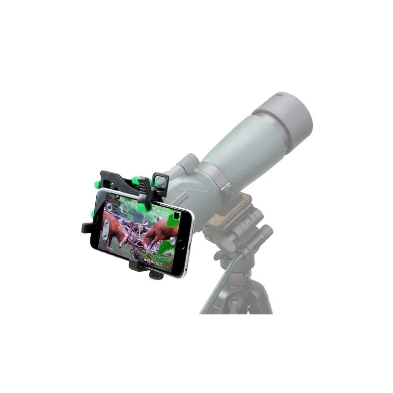 ;By attaching your smartphone using the HookUpz 2.0 it becomes possible to take photos and videos of what you see. Now it s also possible to see through the binocular, spotting scope, telescope, microscope or nightvision with several people at the same time. Because a lens spacer is included, the distance between the lens and the eyepiece can be adjusted.