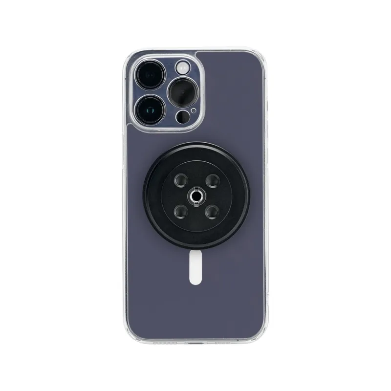 The magnetic mount features four 1/4 20 and one 3/8 16 socket holes on the back, allowing you to attach the device/ tripod with a 1/4 20 or 3/8 16 screw. In addition, the magnetic mount uses an Arca Type quick release plate design and allows you to slide it directly onto an Arca Type ball head.,