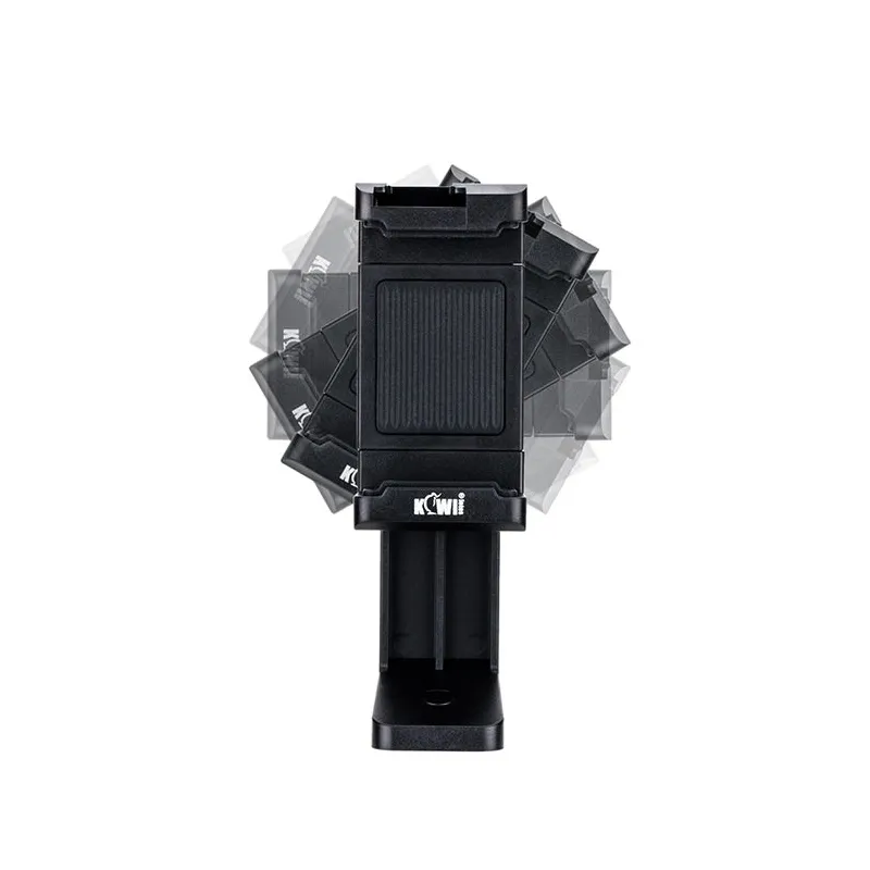 This smartphone clip also the possibility to attach an LED lamp, flash or microphone via a cold shoe. With this clip your phone can be run for 360 degrees. This way you can easily take standing portrait photos or selfies.
