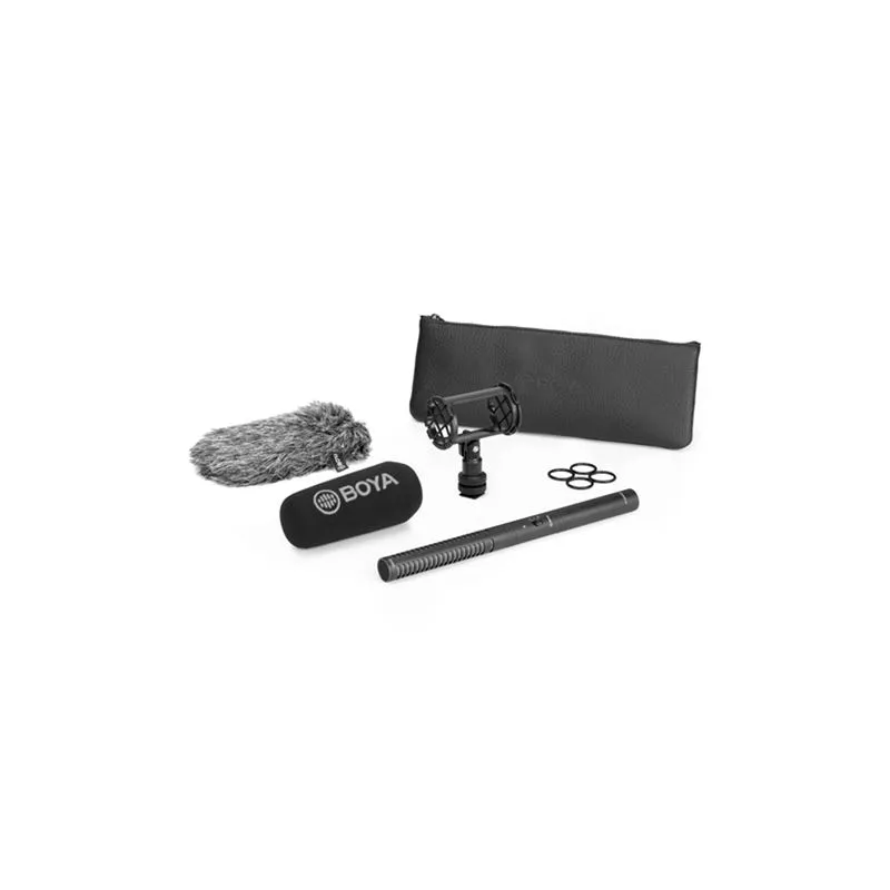 1x BY-PVM3000S microphone; 1x Anti-shock holder; 1x Windscreen; 1x Windscreen; 1x Storage pouch; 1x Spare set of rubber bands; 1x Warranty certificate; 1x User Manual; 1x Package
