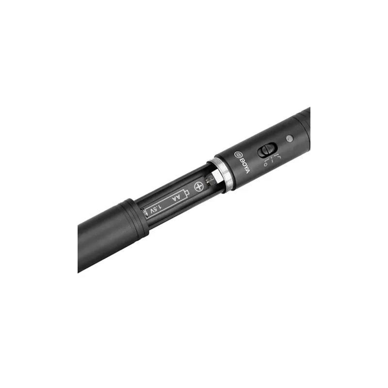 Boya's BY-PVM3000S is a professional high-end directional microphone with supercardioid directional characteristics. The built-in preamp module ensures that the sound is amplified. The BY-PVM3000 is available in two versions: S and M. You are currently viewing the S version, with a length of 28 cm. The S version records sound at an angle of 70 degrees. Compared to the M-version, the BY-PVM3000S records sound at a larger angle. This results in high volume and relatively more ambient noise. The BY-PVM3000S is suitable for shorter distances. The button on the BY-PVM3000S switches the microphone on and allows you to switch on a low-cut filter if you wish. This blocks unwanted humming, for example from air conditioning or traffic.