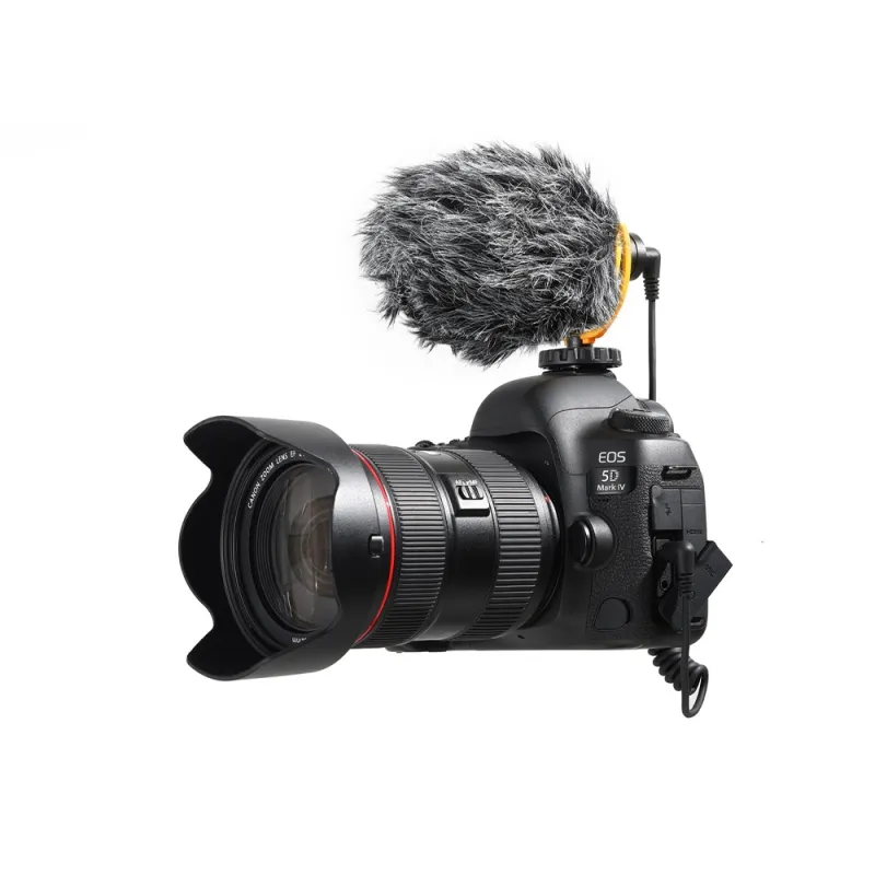 VD-Mic is a lightweight and super compact directional shotgun microphone, offering improved sound quality to your recording; it picks up sound in front of the microphone clearly while attenuating the surrounding noises. A perfect choice for vlogging, live streaming, interview and more.