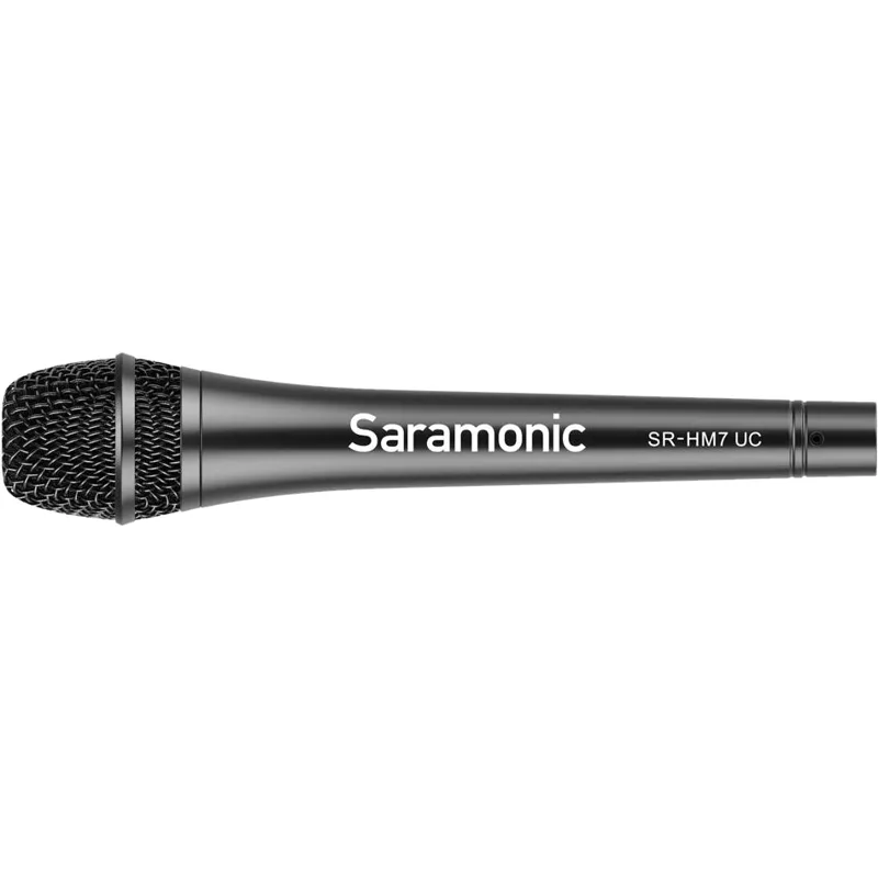 The Saramonic SR-HM7 UC is a handheld digital dynamic microphone that delivers premium, broadcast-quality sound and comes with dedicated output cables for direct connection to the USB-C ports found on modern Android devices and computers, and a USB-A cable for use with Windows PCs and Apple Macintosh computers. A built-in headphone jack lets you to listen to your sound during recording and playback. The microphone element was designed to enhance the clarity of the human voice, which makes it an excellent choice for use in podcasting, presentation videos, news gathering, audio for smartphone videos, live streaming, vlogging, music recording and more.