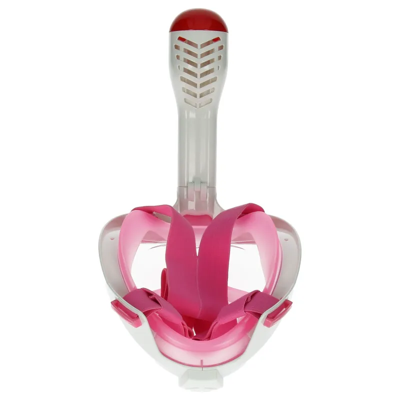 Caruba Full Face Snorkel Mask Swift - Foldable + Action Cam Mount (Pink - L/XL) The Caruba Full Face Snorkel Mask offers a new snorkeling experience! This mask covers the entire face, allowing for breathing through both mouth and nose. The anti-fog mask offers a wide viewing angle of no less than 180 degrees, making the underwater view even more spectacular.