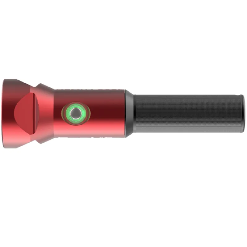 Constructed from anodized aluminum, the Mini 1300S is durable and corrosion-resistant, with a waterproof seal down to 330ft (100m). The battery indicator shows charge levels from green to red.
