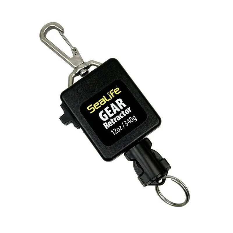 The large Sealife gear retractor extends to 107cm and has 340g of retraction force. The retracting cord has a 36kg breaking strength. The retraction system is self-flushing; the only maintenance needed is a thorough washing in fresh water.