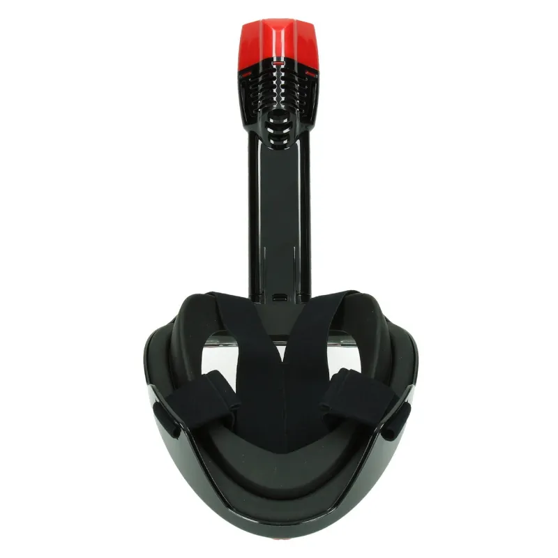 Caruba Full Face Snorkel Mask Pro - Extra Long + Action Cam Mount (Black + Red - S/M) The Caruba Full Face Snorkel Mask offers a new snorkeling experience! This mask covers the entire face, allowing for breathing through both mouth and nose. The anti-fog mask offers a wide viewing angle of no less than 180 degrees, making the underwater view even more spectacular.