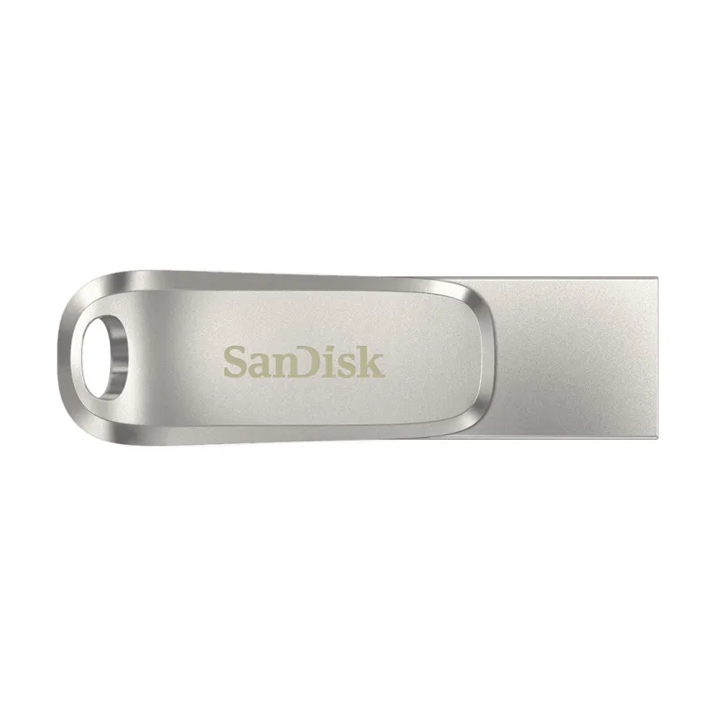 A high-speed SanDisk Ultra Dual Drive Luxe with a capacity of 32 GB, compatible with both USB Type-A and USB Type-C ports.