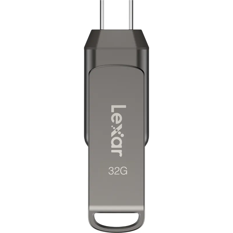 Lexar JumpDrive Dual Drive D400 USB 3.1 Type-CTM ir 2-in-1 zibatmiņas zibatmiņas disks, kas ļauj ērti pārsūtīt saturu starp USB Type-CTM un A tipa ierīcēm. Šim diskdziņam ir stilīgs metāla korpuss un grozāms dizains papildu aizsardzībai, un tas ir tikpat izturīgs, cik ātrs, ar datu pārsūtīšanas ātrumu līdz 130 MB/s.