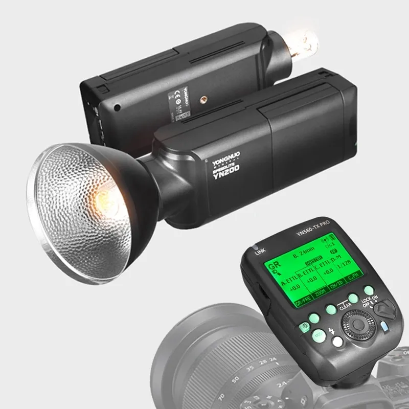 Wireless communication with the YN200 flash is possible in two ways. The first is based on radio communication, supported by the new 560 PRO system, which integrates the two older YN560 and YN622 systems into one compatible unit.