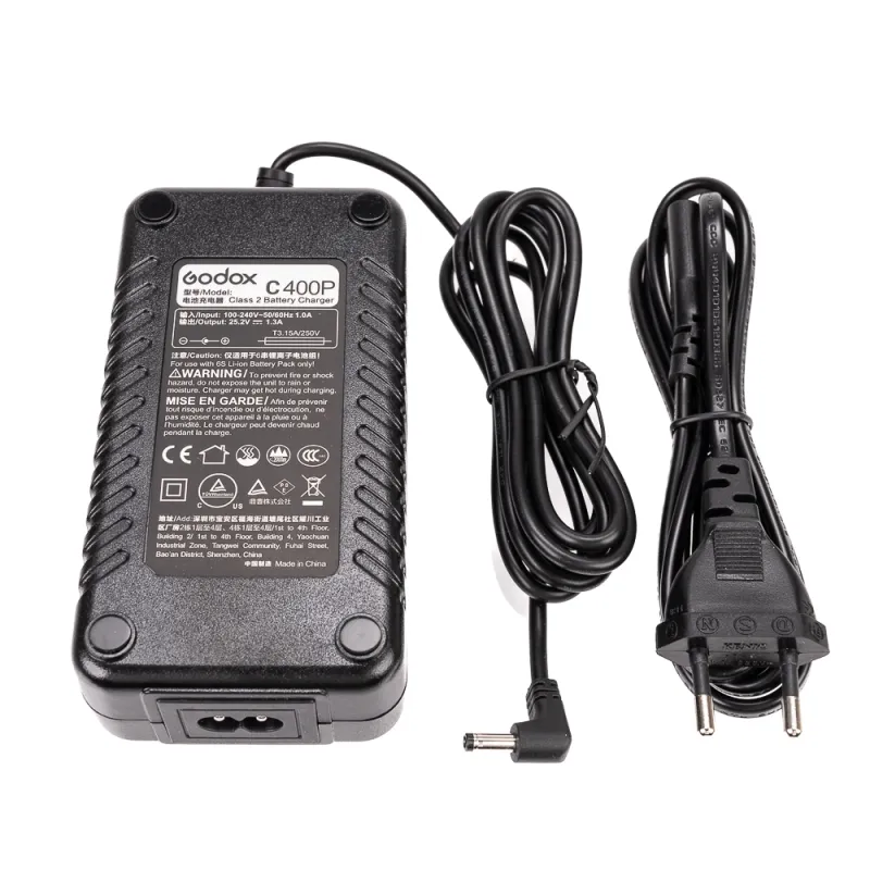 With this Godox Battery Charger for AD400 Pro series you can quickly provide the lithium-ion battery of your Godox Witstro AD400 Pro series portable flash with a new charge. The charger is equipped with LED indicators that keep you informed of the charging status of the battery pack. This charger is supplied with the flash as standard and can be used as a spare or replacement part.