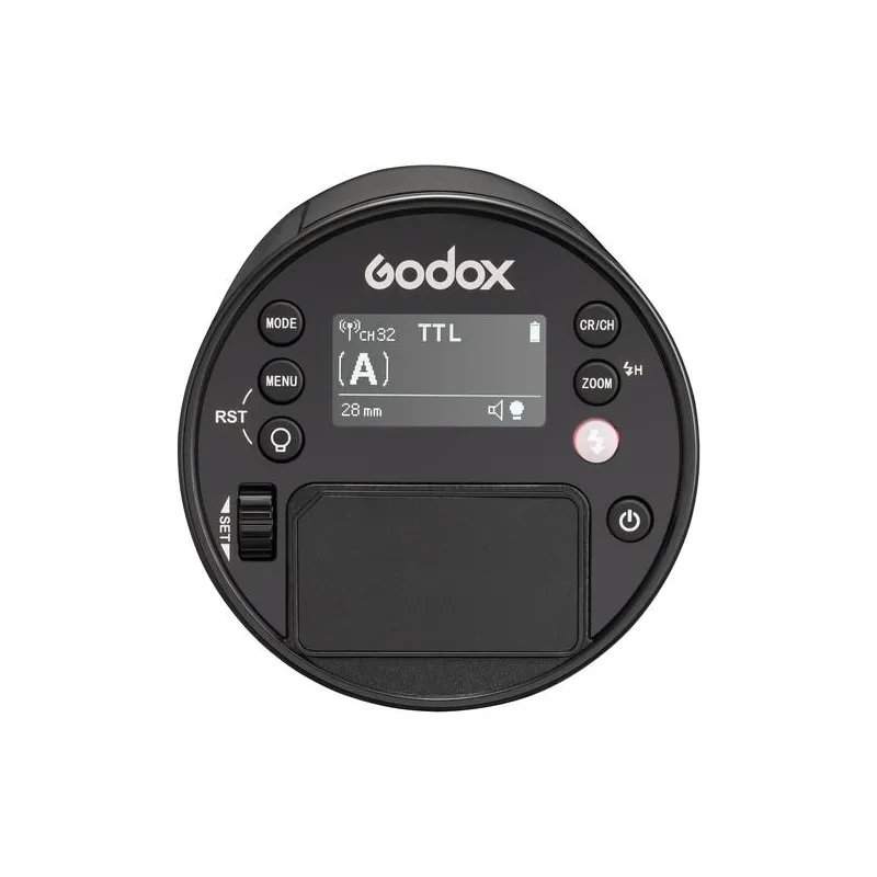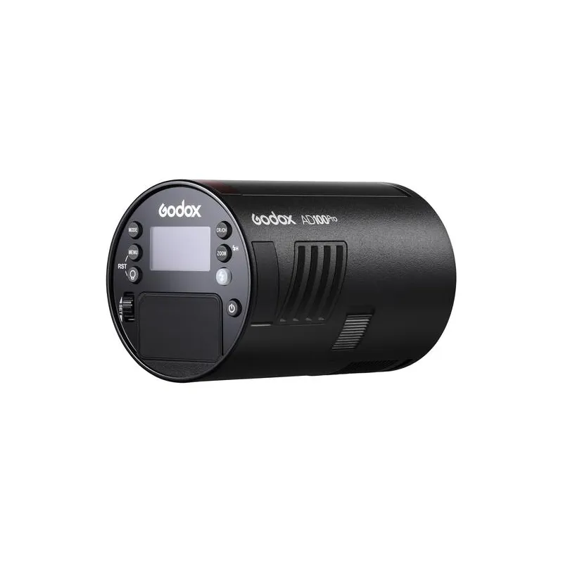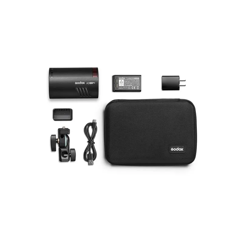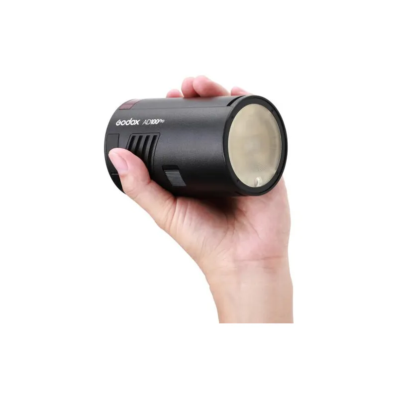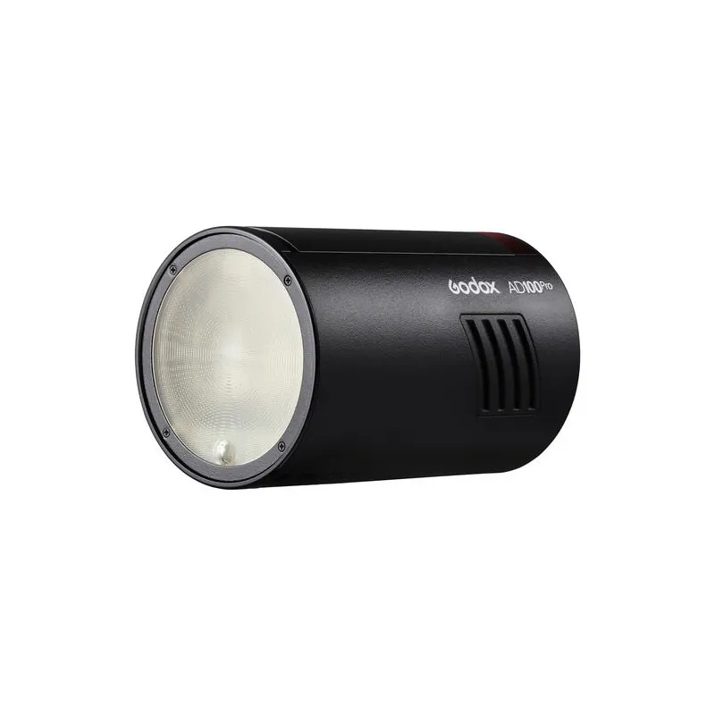 The AD100pro has impressive core features such as 100Ws of power adjustable in nine steps from 1/256 to 1/1, recycling times from 0.01 to 1.5 seconds, and short flash durations. The AD100pro has manual, auto, and stroboscopic capability. Manual mode outputs the user's choice of power, modeling light, and first or second curtain sync. Multi mode controls the stroboscopic rate up to 90 times (90 Hz). Optional wireless transmitters with 32-channel and four groups system control flash mode, first and second curtain sync, High-Speed Sync up to 1/8000 second, power level, and modeling lamp at distances up to 328'. Firmware updates are obtainable on the Godox website.
