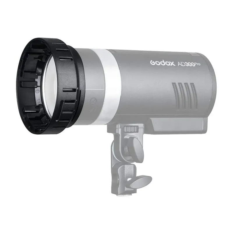 The Godox AD-AS Adapter is a necessary accessory to mount the Godox SN04 snoot on the Godox AD300 Pro flash head.