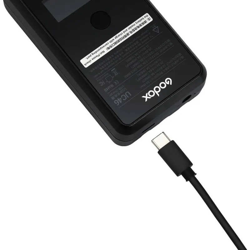 The Godox UC46 USB Charger is a USB Type-C and DC powered battery charger.