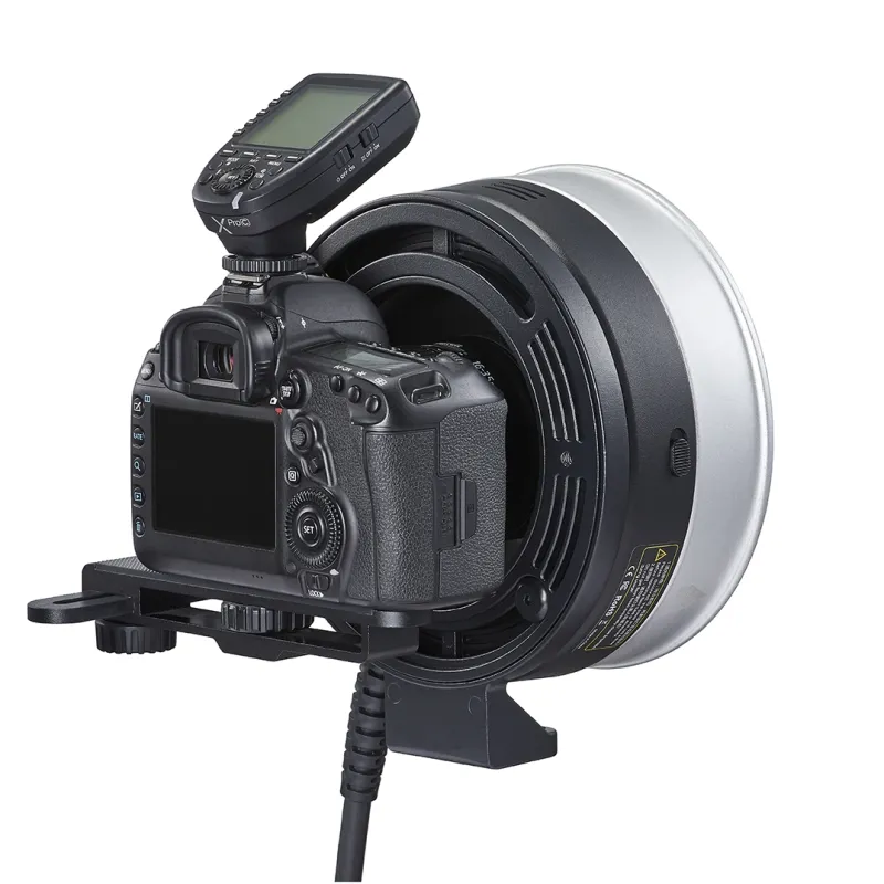 The rotating camera bracket is a quick and simple way to turn the camera both vertically and horizontally when using the Godox R1200 Ring Flash, enabling photographers to fully concentrate on their creation without interference even under intensive shootings.